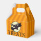 ilustracion gráfico de murciélago personalizado personalizado Halloween con fondo a rayas Naranja de contraste Caja de favores gable. El murciélago de texto y el fondo se pueden personalizar.