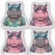 Gracioso Pegatina de Hippo Paquete Guay Hippos Paquete diverso hipopótamo, hipopótamo, hipopótamo fresco, hipopótamo, amantes de hipopótamo, gafas retro, hawaiano, personalizado de hipopótamo, bulto de hipopótamos, hipopótamo retro hipopótamo