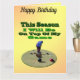 La foto es un divertido jugador de hierba encima de su Lawn Bowl con unos divertidos deseos de cumpleaños en el césped
