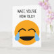 ¿Conoce a alguien que se levanta allí en años? Esta graciosa tarjeta de cumpleaños es perfecta para enviar algunas lágrimas de alegría a su manera. Presenta el ilustracion de una cara de risa naranja en un estilo moderno, dibujado a mano. El mensaje en la parte delantera y en el interior de esta tarjeta de cumpleaños está listo para ser personalizado con tu propio dicho o se puede dejar como está. La parte delantera dice "¿ESPERAR, TÚ ERES TAN VIEJO?" y el mensaje interior dice "¡LO SIENTO NO PUEDE DEJAR DE REÍR LO SUFICIENTE PARA CONTAR ESO ALTO! ¡FELIZ CUMPLEAÑOS!" Este naranja riendo hasta que lloras cara o cara de emoji es perfecto para enviar vítores por cumpleaños o cualquier ocasión.