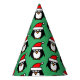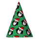 Divertidos Navidades de Santa Pingüino fiesta gorras de conos de papel. Patrón lindo con impresión personalizado. Color de fondo verde o personalizado. Personalizar con texto opcionalmente. Cambia la cantidad que obtienes por el precio al por mayor. Suministros de fiesta de Fun Holidays. Feliz Navidad!