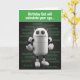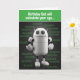 Este lindo robot (alias: "Bot Cumpleaños") es bueno solamente para una cosa...calcular tu edad. Excepto si eres realmente viejo, entonces podrías terminar matando al "Bot Cumpleaños". Lo que es exactamente lo que sucede en el interior de esta tarjeta (foto de un robot muerto). Gran carta para tus viejos amigos y parientes nerds.