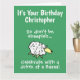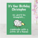 El diseño de ovejas personalizado ilustracion hace de esto una divertida tarjeta de cumpleaños grande! El lema dice "no seas tímido - ¡celebren con una bebida en un baaaa!".