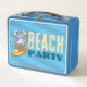 Lleve consigo las vibraciones de verano durante todo el año con esta metalizado caja de almuerzo. Con un personalizado de un oso polar divertido, disfrutando de un cóctel y un ventilador mientras navega en una tabla de surf amarillo brillante. Utilice "Personalizar esta plantilla" para modificar el texto "Fiesta de playa" si lo desea, agregando su propio texto para crear un elemento personalizado único.