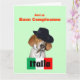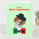 Una graciosa tarjeta de felicitación de cumpleaños en italiano que presenta a un perro de rescate llamado "Charley" vestido de Mobster con bandera italiana. Dice Have a Happy Birthday on front and on inside dice "¡porque soy el jefe de ti!" todo en italiano. Este humorístico diseño original y foto del artista c.a.teresa es personalizable para diferentes ocasiones y puede ser personalizado con sus propios nombres y fotos. Contacte con el artista para obtener órdenes especiales.