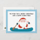 Tarjetas de vacaciones de Navidades con temática de camping con Santa en una canoa.