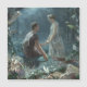 Un sueño nocturno de verano es una de las comedias más encantadoras y queridas de Shakespeare. Ubicada en el mágico reino de las hadas y la bulliciosa ciudad de Atenas, la obra entremezcla historias de amor, magia e identidad equivocada. - La historia se desarrolla con un enfrentamiento entre el mundo humano y el hada. En Atenas, cuatro jóvenes amantes se encuentran enredados en un cuadrángulo amoroso, con Hermia dividida entre Lysander y Demetrius, mientras que Helena pina por Demetrius. Mientras tanto, en el bosque, el rey de los hados Oberon y la reina Titania están encerrados en una disputa, que derivó en una serie de travesuras maliciosas orquestadas por Puck, el malicioso espíritu de Oberon. - Los amantes humanos huyen al bosque para escapar de las estrictas leyes de Atenas, solamente para ser víctimas de la poción de amor de Puck. La poción provoca una confusión caótica, en la que los amantes se persiguen unos a otros en un frenesí de confusión. Como si eso no fuera suficiente, el Rey de los Hados trata de humillar a la Reina volviendo la cabeza sobre los talones a un actor torpe llamado Bottom, que ha sido transformado en un dólar por la magia de Puck. - En medio del caos, la obra dentro de una obra, "Pyramus y Thisbe", interpretada por un grupo de actores aficionados, agrega una capa de absurdo cómico. La actuación climática de la obra ante el duque y la duquesa de Atenas es un espectáculo hilarante de percances y malentendidos. - Al final, la magia del bosque hace sus maravillas, resolviendo los conflictos de los amantes y restableciendo la armonía tanto en el mundo humano como en el del hada. La obra concluye con una alegre celebración del amor y el matrimonio, mientras los atenienses y las hadas se unen en una armoniosa mezcla de sueños y realidad. - El sueño de una noche de verano es una obra de arte atemporal que sigue cautivando al público con su mezcla de humor, fantasía y lenguaje poético. Explora temas como el amor, la identidad y el poder de la imaginación, convirtiéndola en una obra de arte relevante y perdurable. Pintura acuarela creada por John Simmons 1870 de dominio público.