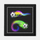 Este imán cuadrado se muestra con una impresión artística de una pelota de fútbol en llamas.