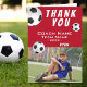 Red Soccer Football Sports Gracias Tarjeta de entrenador con foto. Fútbol gracias tarjeta de entrenador con foto, gracias texto, nombre del entrenador, nombre del equipo, año, nombre y pelotas de fútbol. Dentro de la carta hay más pelotas de fútbol. Tarjeta de agradecimiento por foto - agrega tu foto a la plantilla. Personaliza la tarjeta con nombres y tu texto. ¡Gran carta de agradecimiento para el entrenador del equipo de fútbol!