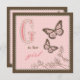 Mariposas monarca dulce y flores diamante de imitación con guarnecido de encaje de novedad G monograma para una tarjeta chica de invitación a la ducha.