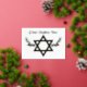 Esta elegante tarjeta de Relieve metalizado dorado cuenta con una Estrella de David acentuada con ramas de olivo, que simboliza la paz, la reflexión y la renovación, perfecta para enviar sentidos deseos a Yom Kippur.