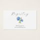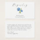Esta romántica y elegante tarjeta de registro de regalos de dos caras cuenta con un fondo blanco nítido con un ilustracion de hidrangea floral azul polvoriento, detalles de la tienda de registros y código de referencia, así como sitio web de bodas. Personalizar al contenido de su corazón.