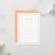 Sencilla y elegante, esta moderna tarjeta de gabinete RSVP para bodas presenta un diseño minimalista con un borde de doble marco en durazno contemporáneo sobre un fondo blanco y nítido. Personalice con la fecha de su boda y los elementos de menú seleccionados. Espacios proporcionados para que el invitado agregue sus nombres y respuestas para una respuesta de retorno. Las letras y el guión están en el melocotón correspondiente. La parte posterior de la tarjeta es de melocotón sólido.