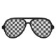 Bandera de cuadros Los tonos de los ganadores. Patrón clásico a cuadros en cada 'lente' perforada en los cuadros fiestas del diseñador Aviador negro. Dos estilos de gafas disponibles Wayfarer y Aviator con muchos colores de marco. Recomiendo probar cuadros de naranjas de burro para realmente destacar de la multitud. Un diseño divertido de Boney. Puede personalizar y personalizar.
