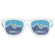 Gafas de sol con un diseño con la bandera de Orem, Utah. Una bandera azul, blanca y amarilla con picos de montaña y el sol en el centro