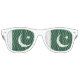 La bandera paquistaní es una estrella blanca y se levanta sobre un oscuro campo verde, con una franja vertical blanca a la izquierda. Los colores utilizados en la bandera son verde y blanco. La proporción de la bandera paquistaní es de 2:3. La bandera de Pakistán fue adoptada en 1947.