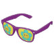 Trendy decora style bold sunglasses, with cute blue and yellow kawaii smiling emoji face flowers on each lens