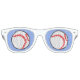 Estas gafas divertidas tienen un béisbol blanco con un fondo azul claro. ¡Perfecto para los aficionados al béisbol!