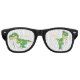 Gafas fiestas con un dinosaurio en las lentes. Tu propia diversión personal. Para el fiesta de los niños pequeños, o para cualquiera que aprecie los dinosaurios, los tonos son de nombre propio. Un regalo de diversión para personalizados.