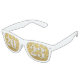 Feliz Año Nuevo con elegante tipografía blanca sobre purpurina de oro. Moda brillante fiesta favorece las gafas de sol para un nuevo año, incluso anfitriona para usar en tu gran bash.