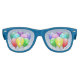 Muchos globos de colores en gafas de sol de cumpleaños para los niños.