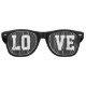 Gafas de sol retro negro de Guay con el texto "AMOR". Grandes lentes de verano o fiesta para mujeres y chicas.