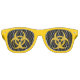 Icono amarillo de advertencia de riesgo biológico sobre fondo negro.