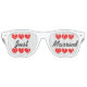 Gracioso recién casado fiestas de la pareja de luna de miel. Haz uno para novia y novio. Diseño de las parejas de luna de miel con corazones rojos y tipografía de escritura elegante. Bodas de ideas de regalo. Humor matrimonial para él y para ella/mrs y mrs.