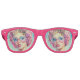 Un cautivador ilustracion digital retro-glam de una mujer elegante con gafas de sol rosas sobredimensionadas y una vibrante corona floral. Rodeado de cielos tropicales, palmeras y veleros, esta atractiva obra de arte exuda la elegancia vintage de la playa y el encanto de la moda. Perfecto para productos Redbubble, como posters, estuches para teléfonos, ropa y pegatinas, aporta colores, belleza y vibraciones de verano a cualquier colección.