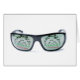 Gafas de sol dióptricas modernas con la carta de ojo de Snellen como reflexión en ella.
