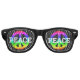Gafas de sol de fiesta: Clásicas gafas de sol retro con el texto "PAZ PAZ" y símbolo de la paz en arcoíris - moda divertida, fiesta de graduados, Santa secreto, celebraciones de oficina / noche fuera