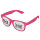 Gafas de novedad para la tribu de la novia. Este divertido diseño retro es genial para una despedida de soltera. Una botella de champán caprichosa hace un diseño divertido que deletrea Tribu de la Novia. Úselas para proteger sus ojos, guárdelas como recuerdo. Cambie el color del marco al tono deseado.