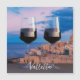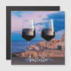 Dos copas de vino con vistas a la puesta de sol sobre el casco antiguo y el puerto de La Valeta, Malta.