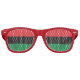 Estas gafas son geniales de usar cuando estás fuera y fuera. Las lentes tienen la bandera panafricana con marcos rojos. Son geniales para una persona que está orgullosa de su herencia africana, ha viajado a África o ha vivido en África. Las gafas de diversión pueden ser personalizadas: colores para los marcos, imágenes en las lentes y texto. Para más artículos como este visita Diseños azoreos en www.zazzle.com/azorean. #africaflaganteojos #africanunion #azoreandenos1 #junetenthgifts