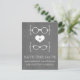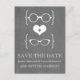 Tarjeta postal de anuncio de boda original y elegante con gafas de nerd y pizarra que presenta un corazón lindo flanqueado por dos pares de gafas nerd, un par masculino y un par femenino que representan al novio y la novia en un fondo con aspecto de pizarra. Esta tarjeta postal de anuncio de boda fuera de lo común es perfecta para anunciar tu boda geek. Fácil de personalizar, simplemente agrega los detalles de tu boda en los campos de texto proporcionados. Haz clic en el botón "Personalízalo" para encontrar opciones de personalización adicionales.