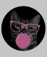 El diseño presenta un gato encantador con un elegante fondo negro. El gato lleva elegantes gafas de sol rosas que le dan un toque de sofisticación a su cara. Las lentes tienen una forma clásica para crear un aspecto atemporal. Lo que hace que este diseño sea particularmente adorable es que el gato está masticando chicle rosa y formando una burbuja juguetona. El tono rosado de la goma de mascar y las gafas crea un acento contrastante contra el fondo negro y le da a la imagen general un aspecto animado. Para los amantes de los gatos, este diseño tiene un encanto especial ya que combina la naturaleza lúdica de los gatos con un toque de elegancia y diversión. Es ideal como pieza de arte o diseño para las personas que disfrutan de representaciones humorísticas y elegantes de gatos.