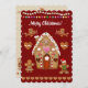 Esta tarjeta de Navidad festiva cuenta con una casa de jengibre con sprinkles de caramelo, una mujer de jengibre y un hombre de jengibre, un tren de vapor y algunos aviones de jengibre. ¡Personalízala hoy en ambos lados con tu propio texto para impresionar a tus seres queridos con tu creatividad!