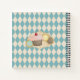 Un bonito fondo de estilo retro con bizcocho esmerilado, cerezo encima y galletas en este libro de cocina personal o cuaderno de recetas para su colección de recetas keepsake.