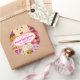 Cute Bakery Cupcakes and Cookies Pegatinas Cute Raspberry Deep Raspberry Pink, Pale Pink Yellow y Blue Cute Baked Goods with Adorable Eyes y bocas kissable con tu información de negocio en un marcador de posición de soporte rosa con letras blancas y brillantes.