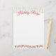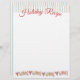 Galletas escarchadas lindas deletrean YUM con un fondo de rayas de caramelo en este membrete de receta o papelería para tu libro de cocina de vacaciones.