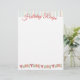 Galletas glaseadas lindas deletrean YUM con un fondo de franja de caramelo en este membrete de receta o papelería para su libro de cocina de vacaciones.