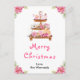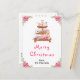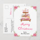 Esta elegante y festiva tarjeta postal de Navidad con acuarela se puede personalizar con el nombre de su familia. Cuenta con un soporte para tartas con galletas de jengibre, macarons, caramelos, chocolate caliente y una tetera. En las esquinas hay hermosas flores de poinsettia rosadas. El texto combina letra manuscrita y fuentes sans serif para un look elegante y moderno.