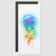 Grandes medusas de azulejo brillantes, de dibujos artísticos, con largos tentáculos en blanco, pintadas con fondo multicolor de acuarela. Mariscas arcoiris.