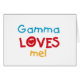 Gamma me ama camisetas, tarjetas, pegatinas, bolsas de pantalones y mucho más con colorido rojo, amarillo y azul texto y diseño del corazón. ¡Esta Gamma me ama ropa y artículos de regalo harán sonreír gamma!