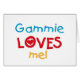 Gammie me ama camisetas, tarjetas, pegatinas, bolsas de pantalones y mucho más con colorido rojo, amarillo y azul texto y diseño del corazón. ¡Esta Gammie me ama ropa y artículos de regalo harán sonreír gammie!
