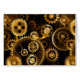 Sin soldadura, metalizado, latón, engranajes dorados sobre un fondo oscuro y oxidado. Estilo Steampunk.