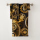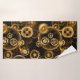 Sin soldadura, metalizado, latón, engranajes dorados sobre un fondo oscuro y oxidado. Estilo Steampunk.