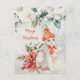 Envía los deseos perfectos de Navidad este año. Esta tarjeta postal irresistiblemente linda de vacaciones presenta un gatito encantador a la acuarela que lleva un sombrero rojo adorable de invierno y un lazo rojo festivo, rodeado de hermosas flores blancas, siemprevivas y copos de nieve delicados. Letra personalizable de Feliz Navidad en el frente y en la parte trasera. Una opción ideal para los amantes de los gatos, amigos y familiares que aprecian a sus compañeros peludos y una manera encantadora de enviar saludos de la temporada que verdaderamente resuenan con los dueños de las mascotas.