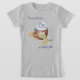En esta linda camisa para el amante del gato, un adorable gatito blanco con ojos azules brillantes se sienta en una taza de copo de nieve marrón y blanco. El texto azul en la parte superior e inferior dice "Me tenías... en el Ministerio de Obras Públicas".