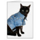 gato negro con chaqueta de jean azul, luciendo duro